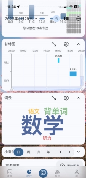 3、真实模拟 - 真实模拟教室场景更专注,自习数据均记录并有统计。