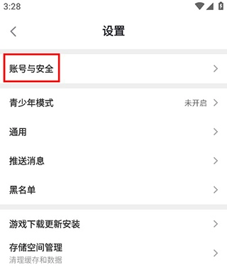 3、现在就可以在设置中找到并点击“账号与安全”选项;