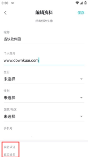 5、最后在修改资料界面中找到并点击“实名认证”选项即可开始实名认证。