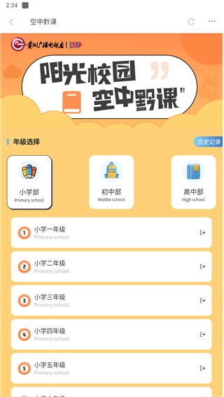 3、从小学部、初中部和高中部这些年级类别中进行选择,随后依据所选年级挑选课程。