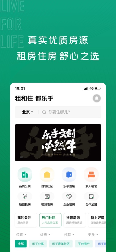 乐乎租房,一款专注于打造全方位高品质租住生活空间的租房服务软件,能满足不同场景下的租住需求。使用乐乎租房,你可在线便捷办理入住、换房、转房、续租、退房等业务,还能实时查看账单、进行日常缴费、申请维修以及提交客诉。不仅如此,通过乐乎租房,你能实时连线专属管家,随时预约生活服务,让生活毫无后顾之忧。同时,你还能实时了解各类社区活动,与众多乐友一起青春作伴尽情玩耍。你与公寓的美好小生活,就差一个乐乎租房。