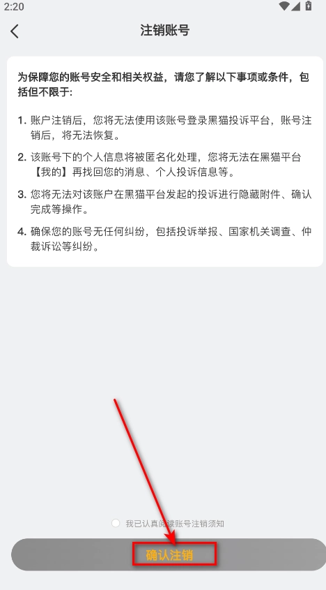 倘若详情页面存在“撤销投诉”按钮(一般以红色字体进行标注),点击该按钮后会弹出确认窗口。