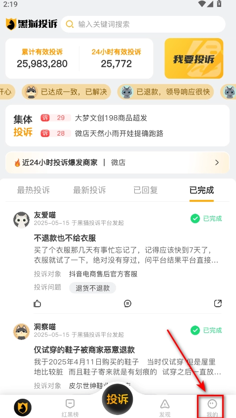 在个人中心找到“我的投诉”选项,点击进入投诉列表页面