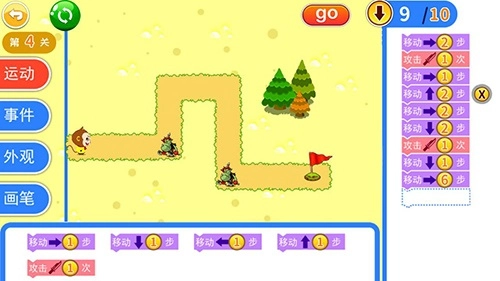 2、循序渐进的学习路径:从基本的移动操作到复杂的算法应用,课程设计合理,确保每个孩子都能跟上节奏。