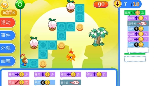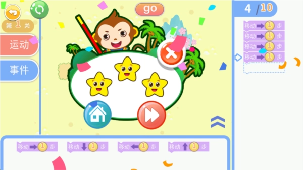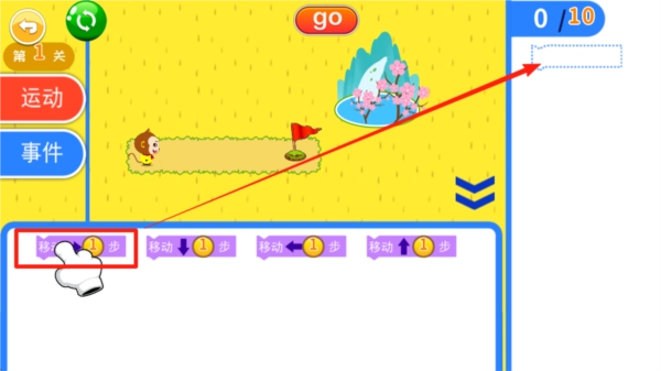 5、方块放置妥当后,点击【go】,小悟空便会向前迈出一步。