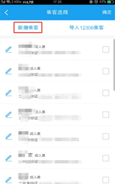 添加乘客也可以在买票的时候添加。