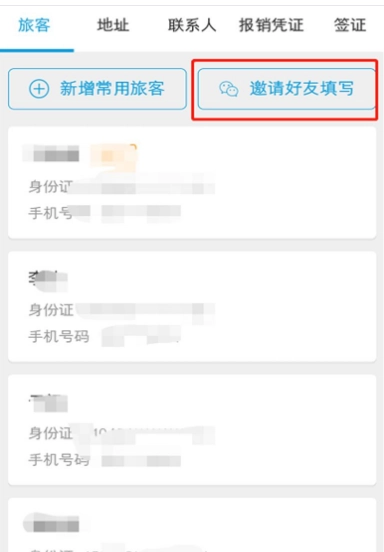 如果想添加乘客也是从【旅客】→【新增常用旅客】。也可以选择【邀请好友填写】,就是微信分享给他,让他自己填信息。