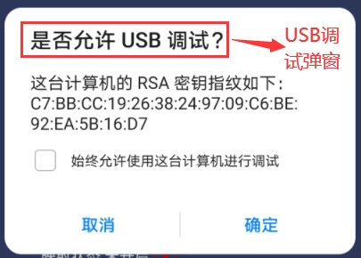 情况二:是数据线,权限也全部开启,但是没有调试请求弹窗?