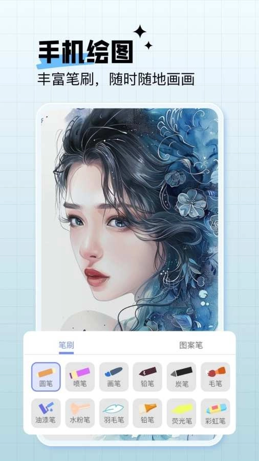 1、画笔多样:有圆笔、喷笔、铅笔、水彩笔等多种画笔,还有仿生笔刷和定制笔刷,可重现真实手绘感觉。