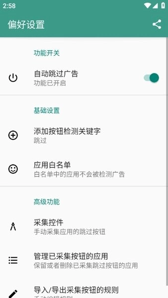 3. 依据自身需求挑选跳过广告的关键字与参数,设置完成后即刻生效。