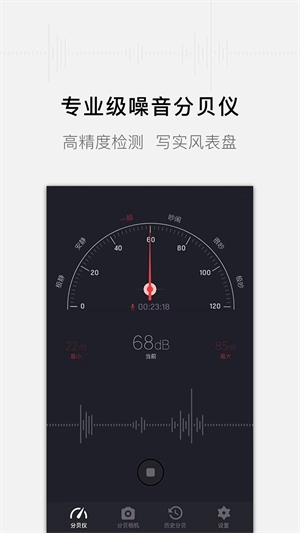 噪音分贝测试仪是一款功能强大的分贝检测软件,帮助用户随时随地监测周围环境的噪音水平,可利用手机的麦克风捕捉并分析环境声音,将其转化为具体的分贝数值显示给用户。