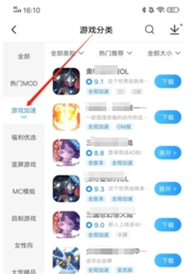 3、点击你感兴趣的游戏或软件,随即就能进入设置页面,进而开启游戏加速。