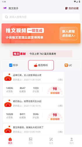 3、热门小说文章都是可以一键制作,打造全面丰富的小说内容哦。