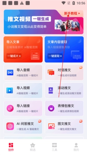 1、一键粘贴文章,AI自动匹配画面字幕、热门配音