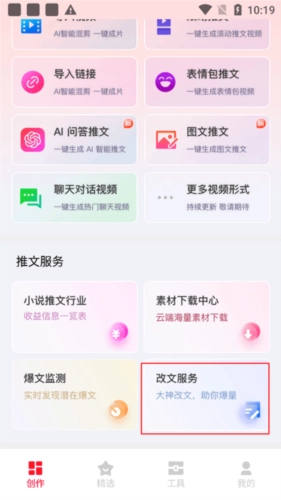 除此之外,还有超多功能为你提供,比如免费去水印、图片提取文字、三联封面等,帮助你创作出更加优质的小说推文视频。当然,还有爆文监测、改文服务等附加功能,让你可以快速找到新的素材,让你创作不间断。你也可以邀请自己的好友一起参加,推广软件就可以升级成为代理商,邀请好友就可以绑定关系,获取额外的收益,有需要的用户快来试试吧!