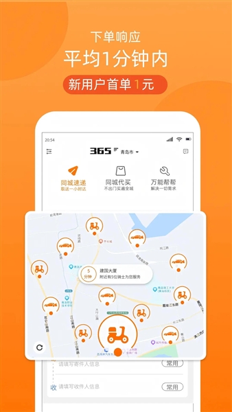 4、只要发布时间和目的地就能够轻松找到最近跑腿;同时用户也可以注册成为“一公里”的快递员,顺手牵“单”赚赚外快。