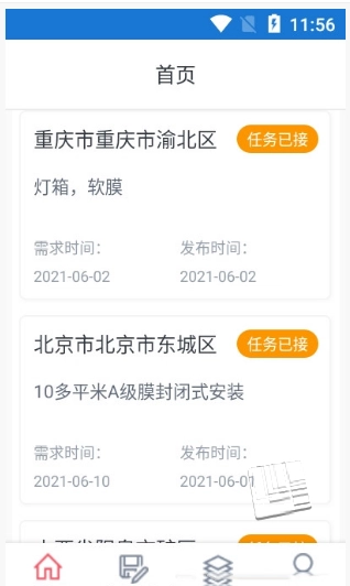 膜军是专门为广大安装师傅打造的在线接单平台,聚焦于柔性膜安装行业。平台每日都会分享各类不同的任务,您只需打开手机就能直接查看。您既可以按需接收任务,也能够在网上发布搭建任务,供其他师傅接收,而且整个平台的使用完全免费。