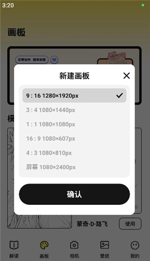 2. 点击“新建画板”,挑选适宜的尺寸。
