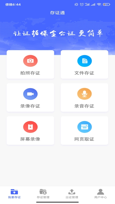 存证通App是一款极为实用的电子数据存证服务软件。该软件功能丰富且专业,能让办公变得更为简便高效。借助它,用户可在手机上完成线上电子证据办理及公证服务,有效保障电子证据的证明力。此外,其应用范围广泛,能够实现电子证据的高效在线保存。