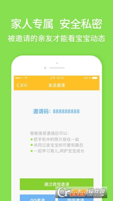 2、智能上传宝宝照片、视频,邀请家人加入,安全私密,互动分享。