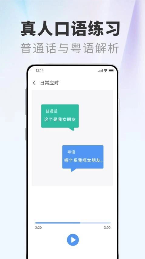 软件当中收录了大量的正宗粤语口语,用户可通过模仿当中的语音进行正宗口语学习