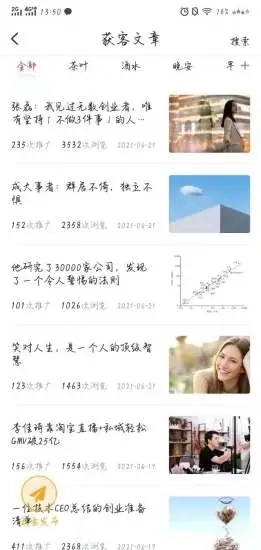 1. 用户打开该软件,便能在主页面看到大量新闻资讯,这些资讯是专门为准备创业或正处于发展阶段的用户提供的。