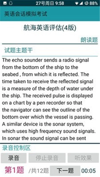3、“会话模拟考试”,可以将考试录音保存到手机中,以便请老师评判、打分。