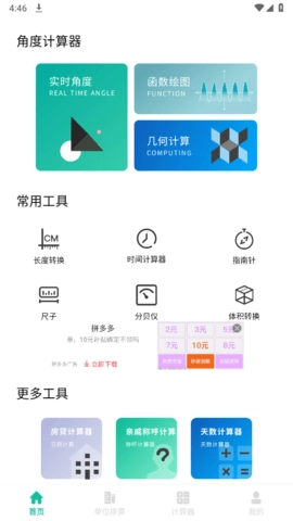 2. 进入主页,你会发现其中有诸多工具可供使用,像分贝计、尺子、房贷车贷计算器等都包含在内。