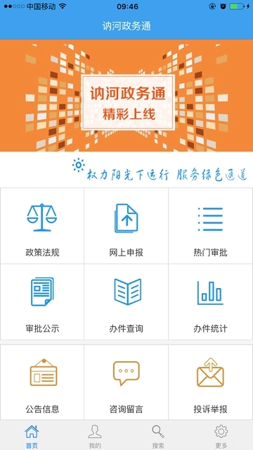 1、这是一个融合了在线审批申报、信息公开以及信息共享功能的移动申报平台。