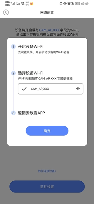 3、设备扫码添加步骤:按照提示,先给设备接通电源并开启,随后点击连接网络。