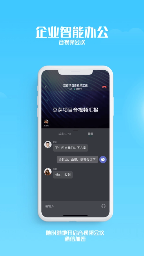 -支持即时消息、视频会议、直播、群发通知多种沟通方式