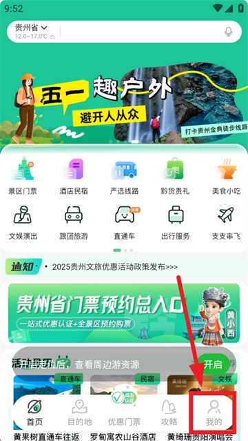 在本站下载并打开一码游贵州,进入首页界面后,点击“我的”选项。