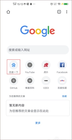 1. 启动谷歌浏览器,于其主界面里找寻“百度一下”图标,然后点击该图标将其打开。