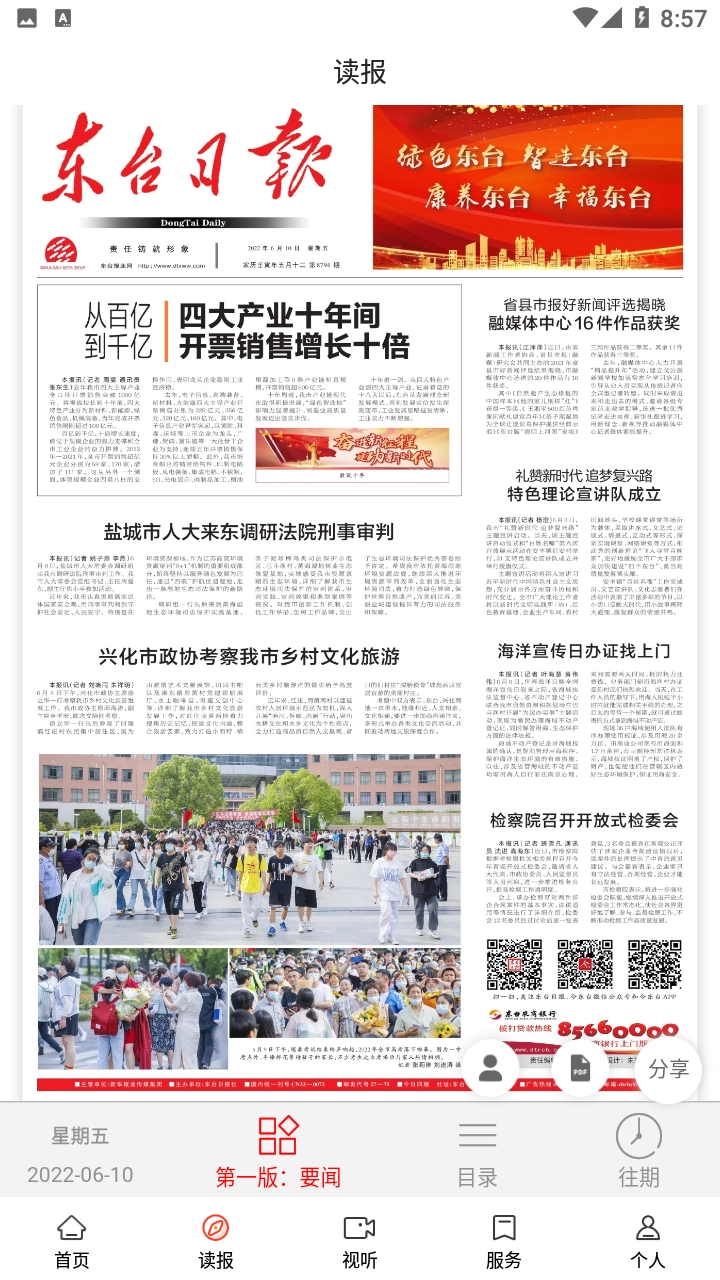如今,东台有一款由东台市融媒体中心与江苏广电总台联合打造的综合性移动端服务平台。借助这个平台,用户能够通过手机完成读报纸、看电视、听广播、购物消费、查询资讯、云游景点等多项操作。同时,该平台还与政务服务办事平台互联互通,真正做到让用户只要一部手机在手,就能全面了解东台的各类信息。