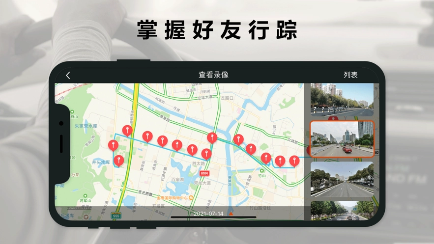 3、知晓好友行踪:邀请好友安装“掌上护驾”,并让其将设备分享至您的手机,如此您便能随时查看好友的历史轨迹与录像。