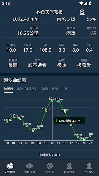 2、信息全面:软件综合多种影响钓鱼的因素,提供全方位的钓鱼参考。