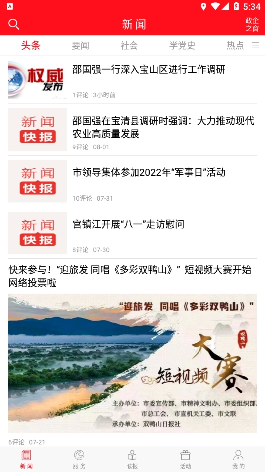 “掌上双鸭山”作为一款融媒体应用,涵盖新闻、服务、读报、活动、“我的”等功能板块,能更有效地引导并服务双鸭山地区。诚挚欢迎大家前来使用。