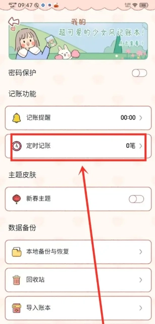 1. 开启恋恋记账应用,接着点击“定时记账”这一选项。