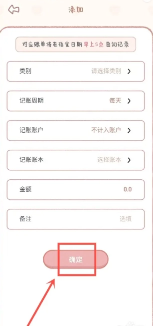 3、于添加页面编辑定时记账相关信息,确认无误后,点击“确定”按钮以完成设置。