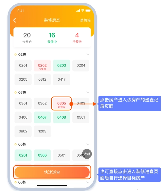 操作途径:优你管家App - 首页 - “装修巡查”板块。