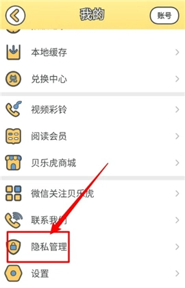1、打开贝乐虎儿歌,点击隐私管理选项。