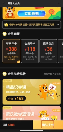 3、用户可以根据需要来开通,年卡388元,季卡118元,连续包月36元,月卡40元。