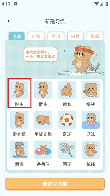 2. 挑选一个习惯,或者也能够自行定义习惯。
