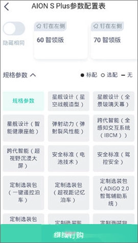 3、点击【选项选择】,选择想确认的参数,点击【继续下单】。