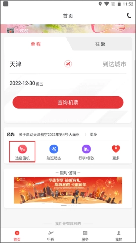 1、机票预订—在首页便捷检索,航线通行毫无阻碍,让您轻松踏上旅程。