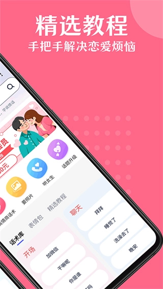 情话帮,是一款专门为那些渴望恋爱,却性格内敛的人精心设计打造的恋爱聊天软件。情话帮最新手机版,专注于帮用户解决恋爱中的烦恼。不少人之所以追不上暗恋对象,就是因为嘴笨、不擅长聊天。而这款软件会为你精选专属情话课程,一步一步教会你如何聊天。此外,情话帮拥有100W+聊天话术,让聊天变得轻松有趣。