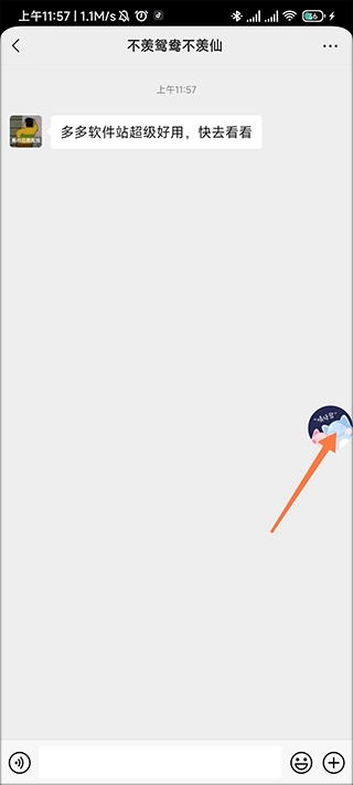 3、接下来,我们返回微信,此时能看到有人给我们发来了信息。我们把信息复制好,接着点击手机侧边的悬浮窗。