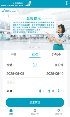 1、在这里你能随时随地找到大湾区航空的所有航线信息,并进行实时的航班查询,在线直接预订机票,心仪的座位与舱位尽在你手中。