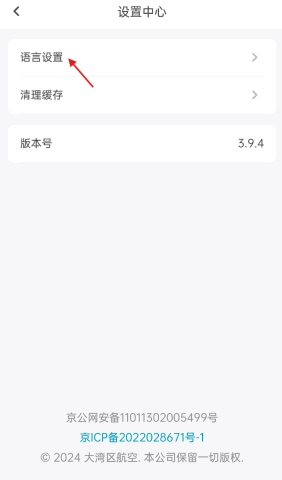 1、第一步,轻轻点击设置中心,开启大湾区航空的设置首页。
