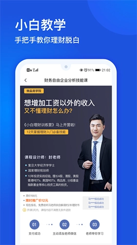 1. 提供专业的财商教育课程以及理财规划服务,助力用户切实掌握实现财务自由的方法。
